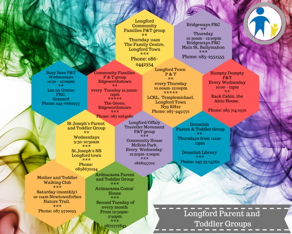 For more information on setting up a Parent and Toddler Group, please contact a member of our team in the Longford CCC on 043 33 42505.